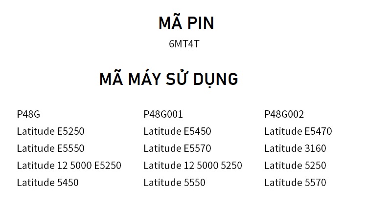 Dell Latitude 5250, 5550, 5450, 5570, 3160 (6MT4T Dùng chung với mã G5M10, RYXXH)